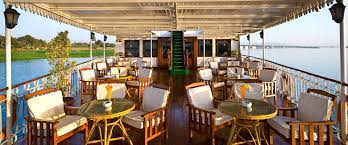 The Karim Nile Steamer has various rooms and suites that look like they came from a different time. Each room is beautifully decorated and offers a cozy place to stay. Passengers can stay in cabins with air conditioning, private bathrooms, and oversized windows that give them a comprehensive view of the beautiful scenery along the Nile. On the Karim Nile Steamer, guests can enjoy delicious meals in a charming restaurant serving Egyptian and foreign food. The ship also has comfortable bars and open decks where people can rest, talk to each other, and soak up the peaceful atmosphere while taking in the beautiful views of the Nile.