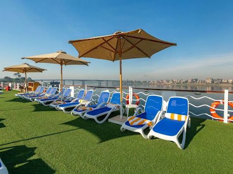 On the Sherry Boat, guests can enjoy several facilities and services to make their trip more enjoyable. The ship has a restaurant where guests can eat delicious foreign and Egyptian food from skilled chefs. There are also comfortable lounge areas and a bar where people can relax, talk to each other, and drink cool drinks while looking at the beautiful scenery along the Nile.